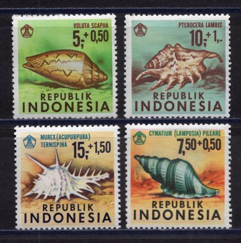 Почтовые марки. Индонезия. 1969г. Ракушки. №661-664.