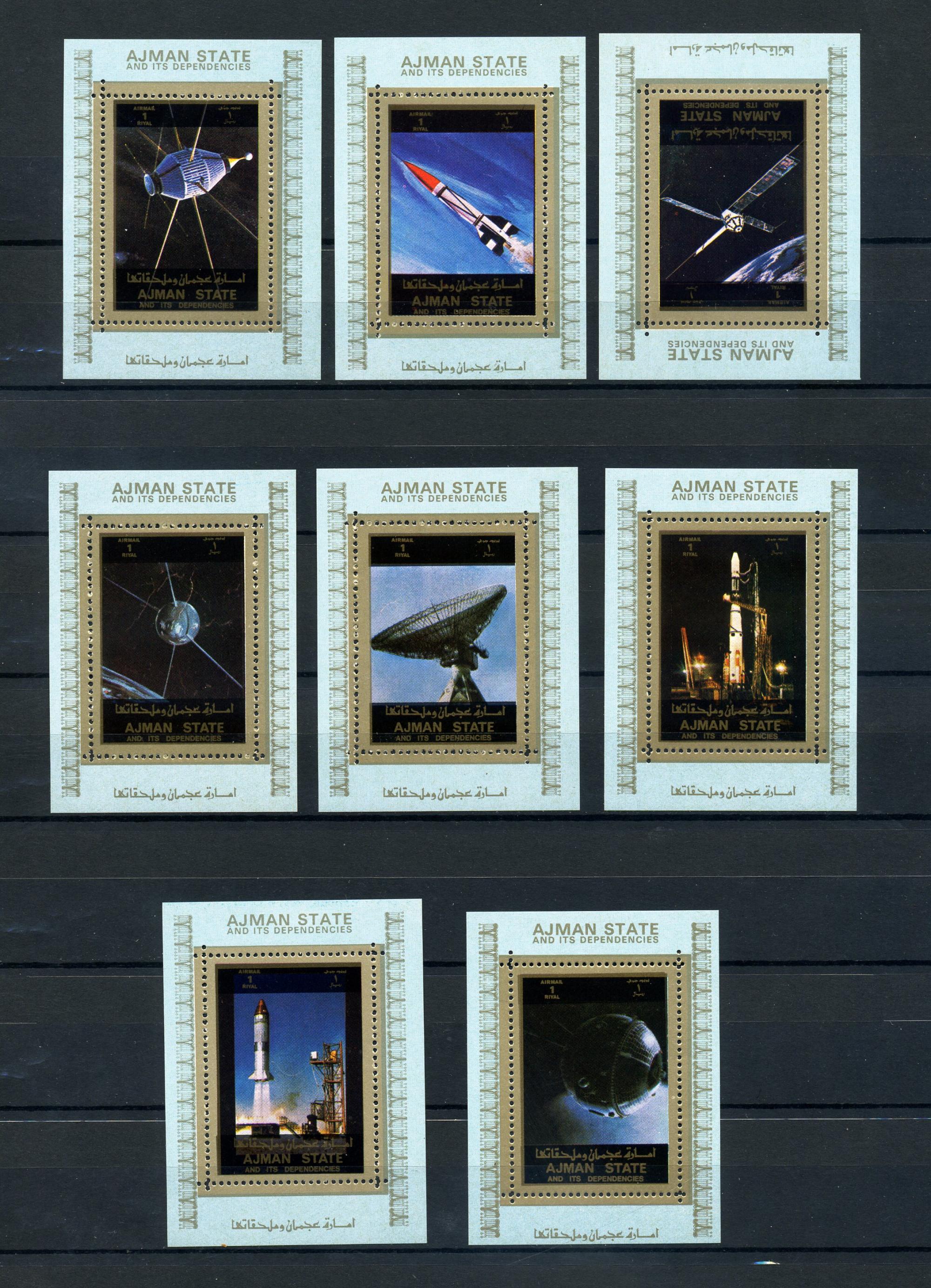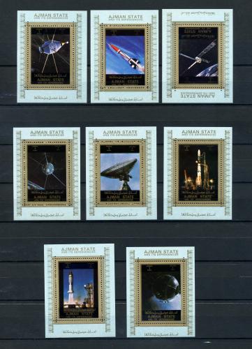 Люкс-блоки. Аджман 1973 г. Космос. Спутники и планеты. № 2781-2788. Комплект.