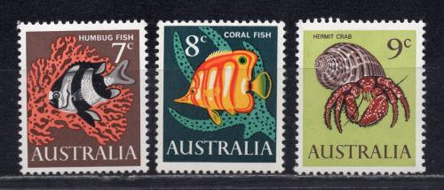 Почтовые марки. Австралия, 1966 г. №364-366. Морская фауна. (См. сост.)