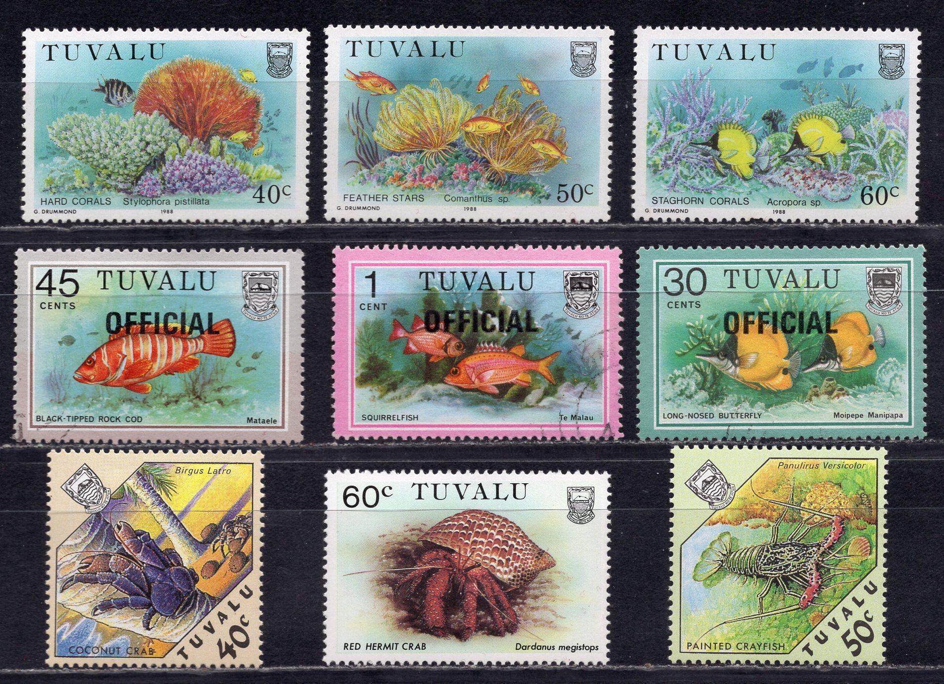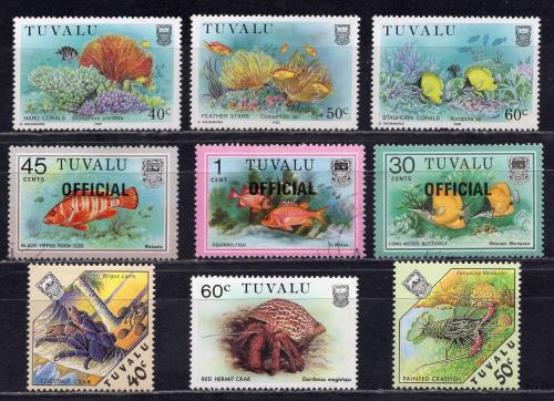 Почтовые марки. Тувалу, 1981-1988 г. №353, 486 etc. Морская фауна. Сборный лот. (Надпечатка на 3-х)