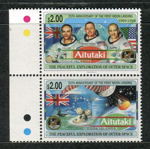Почтовые марки. Айтутаки. 1994г. Космос. Астронавты. №728-729 Сцепка (Mi: 12.00€)