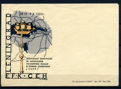 Немаркированный конверт. СССР 1960 г. Европейкая конференция по расписаниям пассажирских поездов. КО. Тир. 3000 экз.