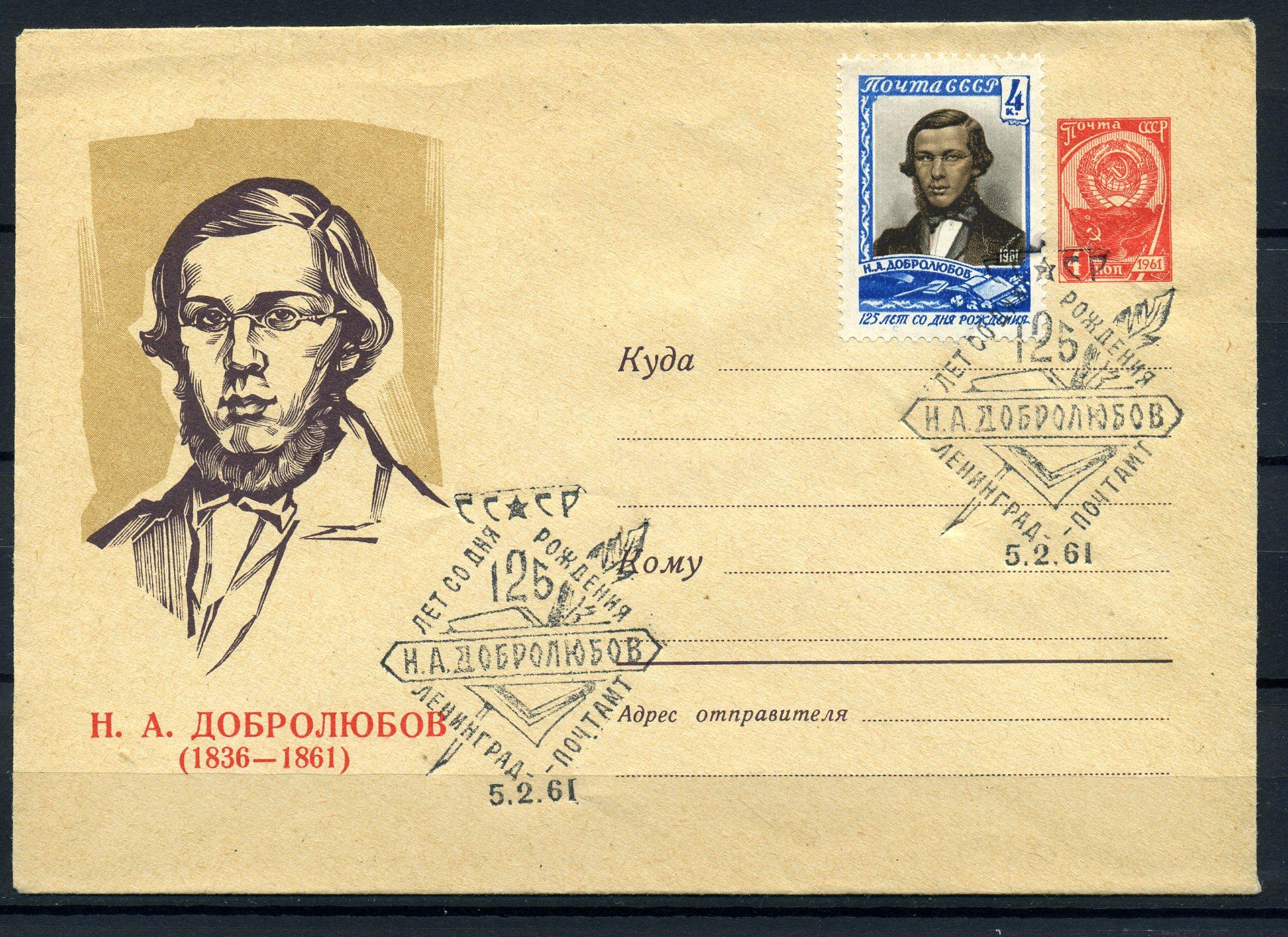ХМК с маркой и СГ. СССР 1961 г. СГ - 125 лет со ДР Н.А. Добролюбова. КО