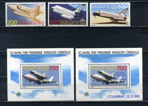 Почтовые марки. Мали. 1981г. Космос. Шаттл Колумбия. Первый полёт. Надпечатка. №872-874. Блок №18-19.