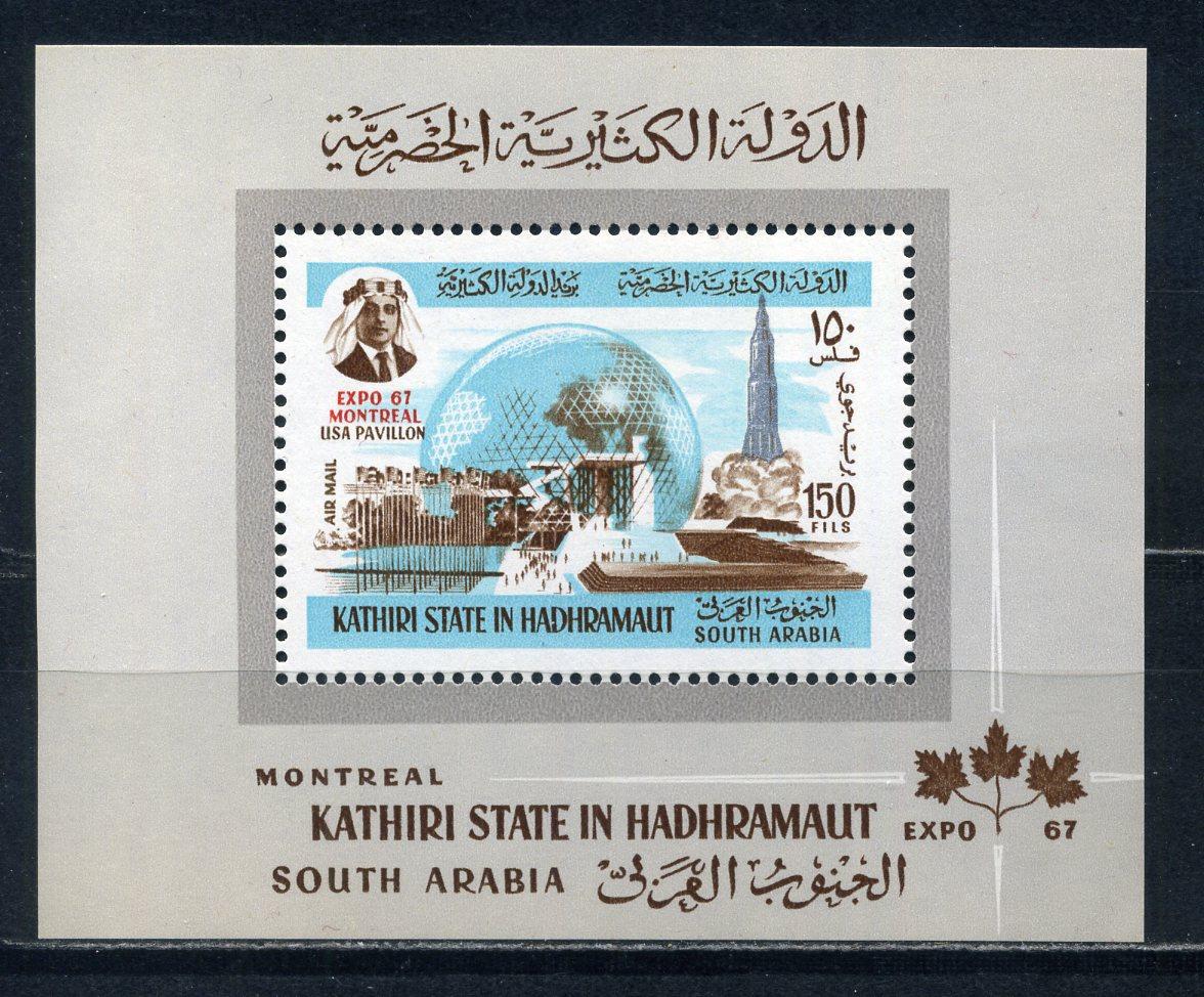 Почтовые марки. Аден Kathiri St. 1967г. ЭКСПО в Монреале. Блок №15.