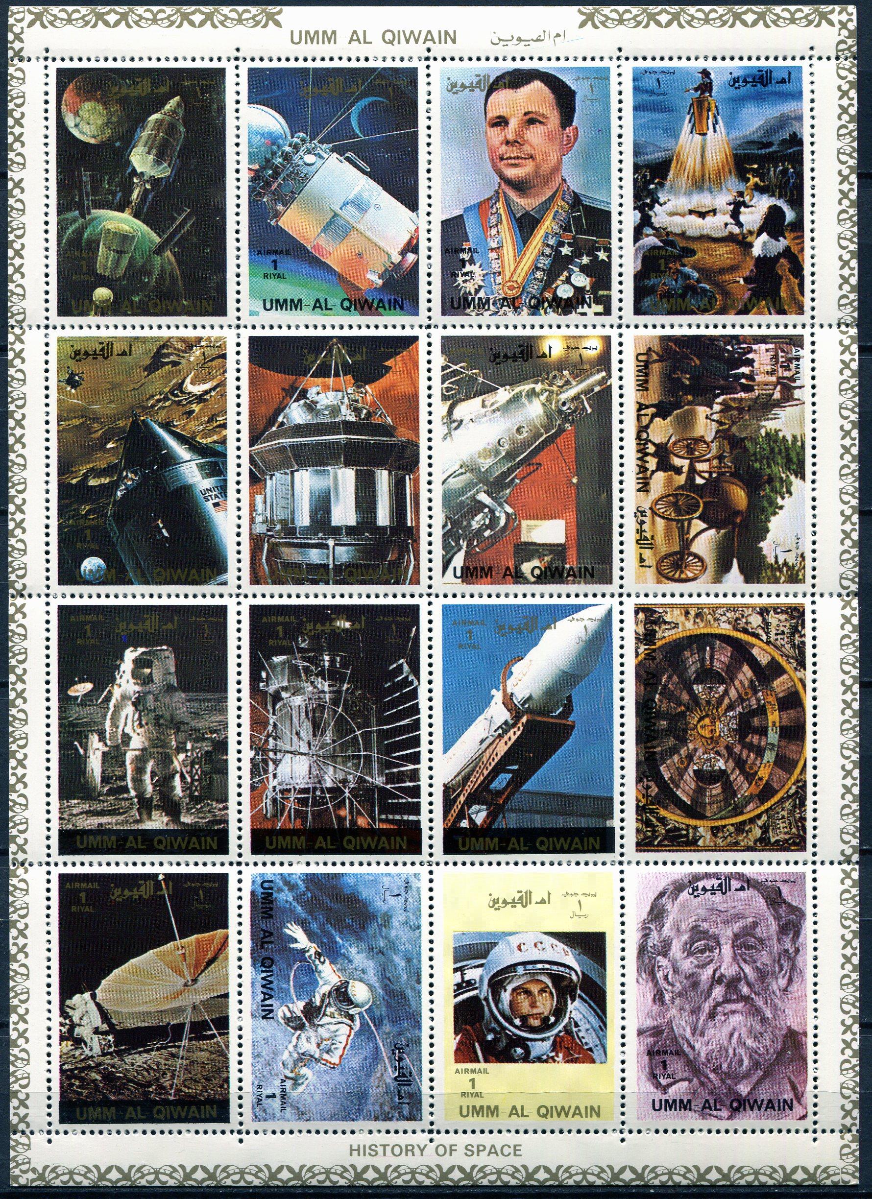 Почтовые марки. Умм-эль-Кайвайн. 1972г. Космос. Гагарин. №1066-81. МЛ. КАРТОН.
