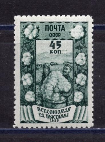 Почтовые марки. СССР. 1939г. С/Х выставка. Хлопок. №681Р. ВР.