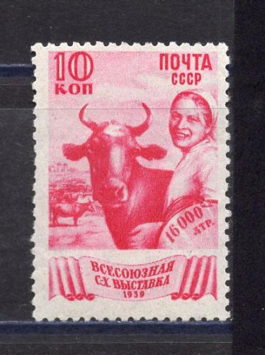 Почтовые марки. СССР. 1939г. С/Х выставка. Доярка. №3676А. 12 1/2:12. ГР. (Без Клея)