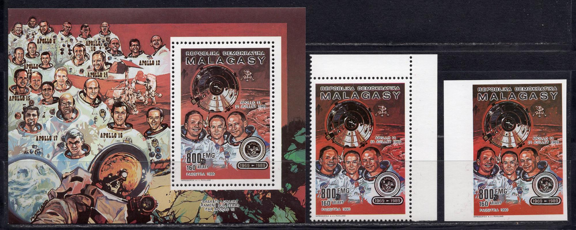 Почтовые марки. Мадагаскар. 1990. Космос. Экипаж. Бл.150 + №1283А и В.