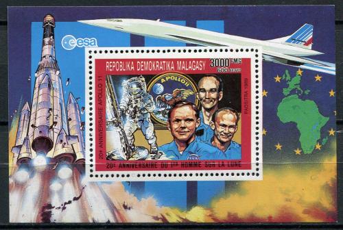 Почтовые марки. Мадагаскар. 1990. Космос. Аполлон-11. Экипаж. № Бл. 132.
