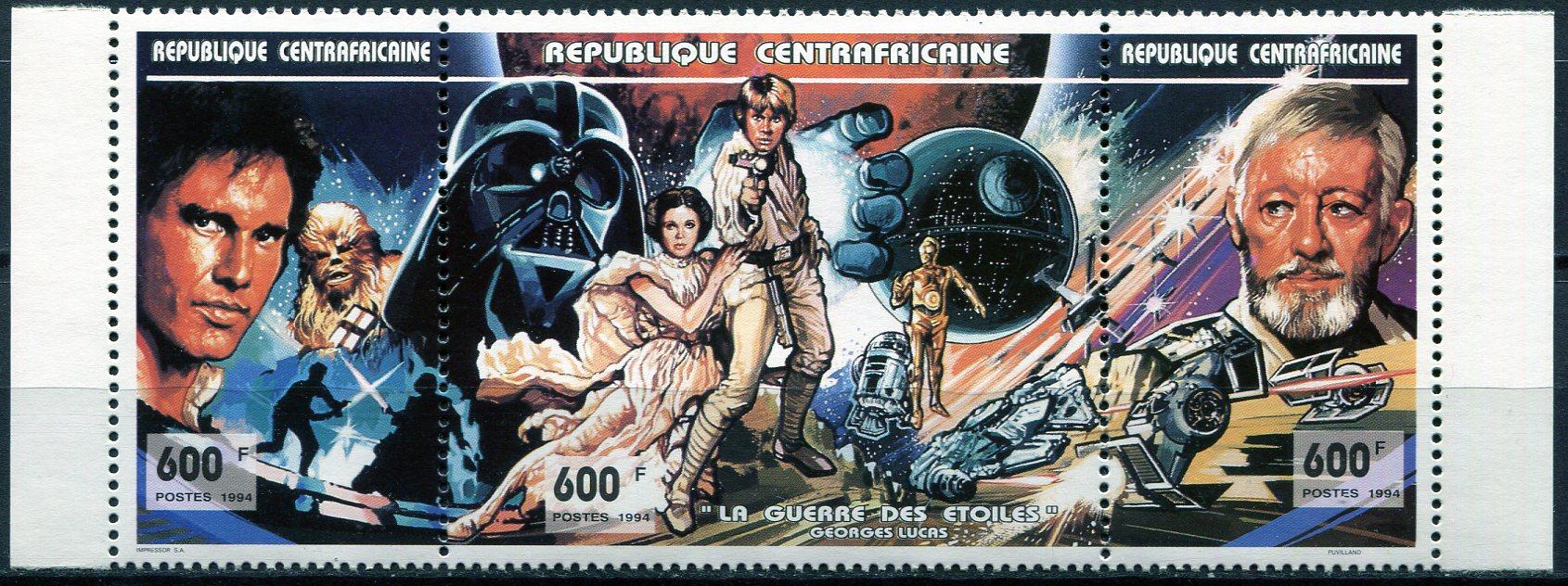 Почтовые марки. ЦАР. 1994. Столетие кинематографа. Космос. Фантастика. № 1639-1641.