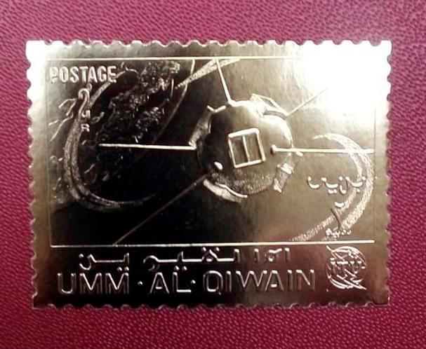 Почтовые марки. Умм-эль-Кайвайн. 1969. Космос. ITU. Фольга. Золото. № 411 (Mi: 12.00 Евро).