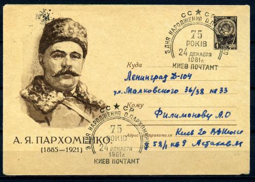 ХМК со СГ, прошедший почту. СССР 1961 г. А.Я. Пархоменко. КЗ.