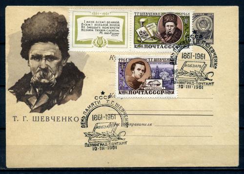 ХМК с марками и СГ. СССР 1961 г. День памяти Т.Г. Шевченко. КЗ.