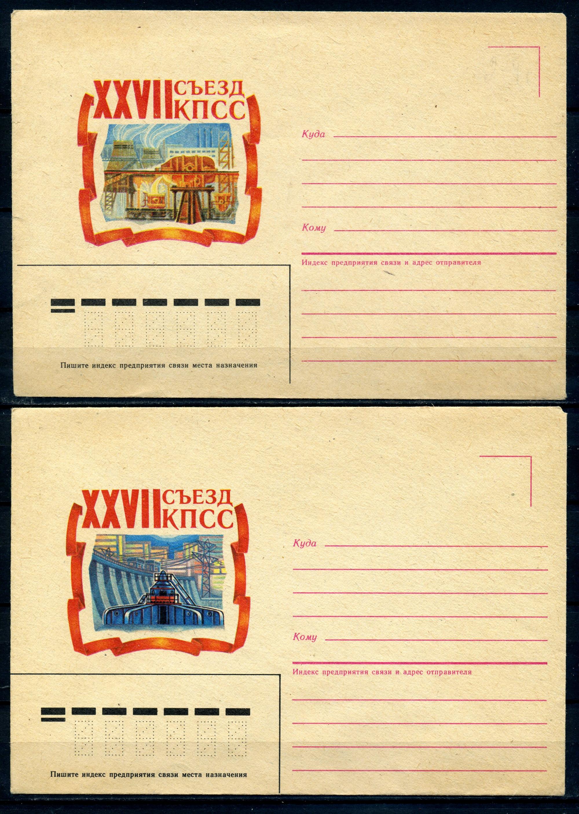 Немаркированные конверты. СССР 1986 г. XXVII съезд КПСС. КО.