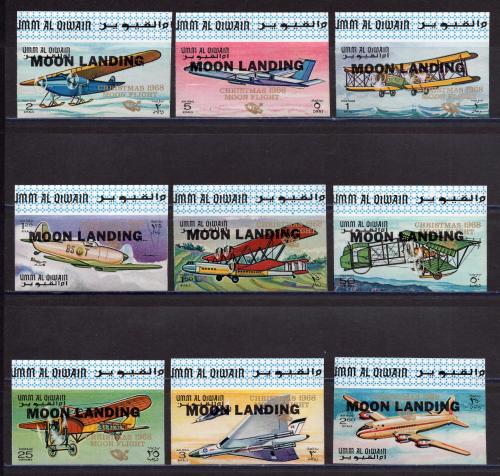 Почтовые марки. Умм-эль-Кайвайн. 1969г. Самолёты. Космос. Надпечатка. №421-429 В. Беззубц.
