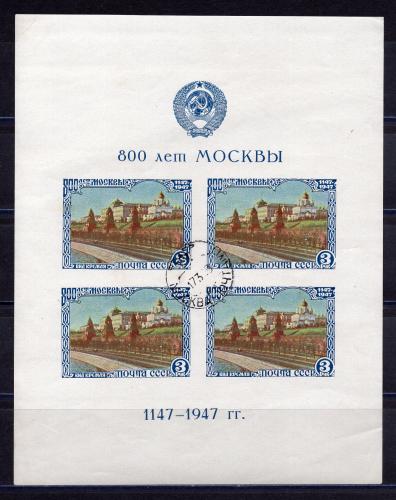 Почтовые марки. СССР. 1947. Москва. №1178. Блок 145х175. Тип 2.