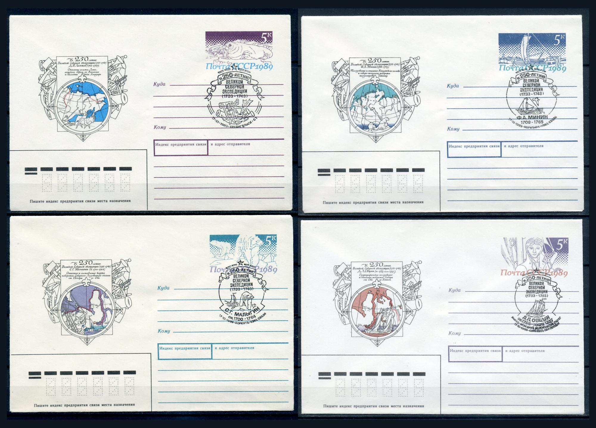 Конверты с ОМ и СГ. СССР 1989 г. К 250-летию Великой Северной Экспедиции. КО.