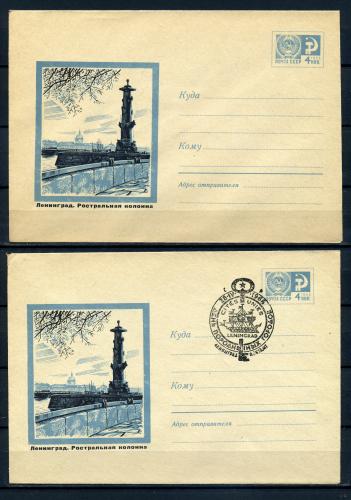 ХМК чист. + СГ. СССР 1967 г. Ленинград. Ростральная колонна. СГ - День породненных городов 1968 г. КЗ.