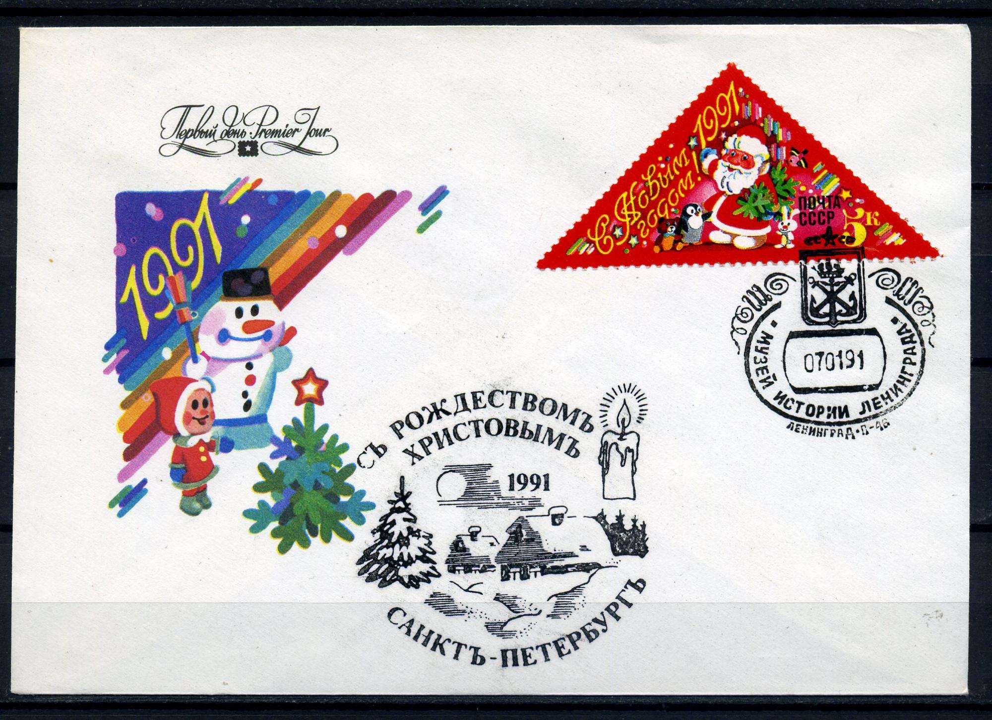 КПД с маркой, СН и сув. гаш. СССР 1991 г. С Новым годом! СГ - музей истории Ленинграда. КО.