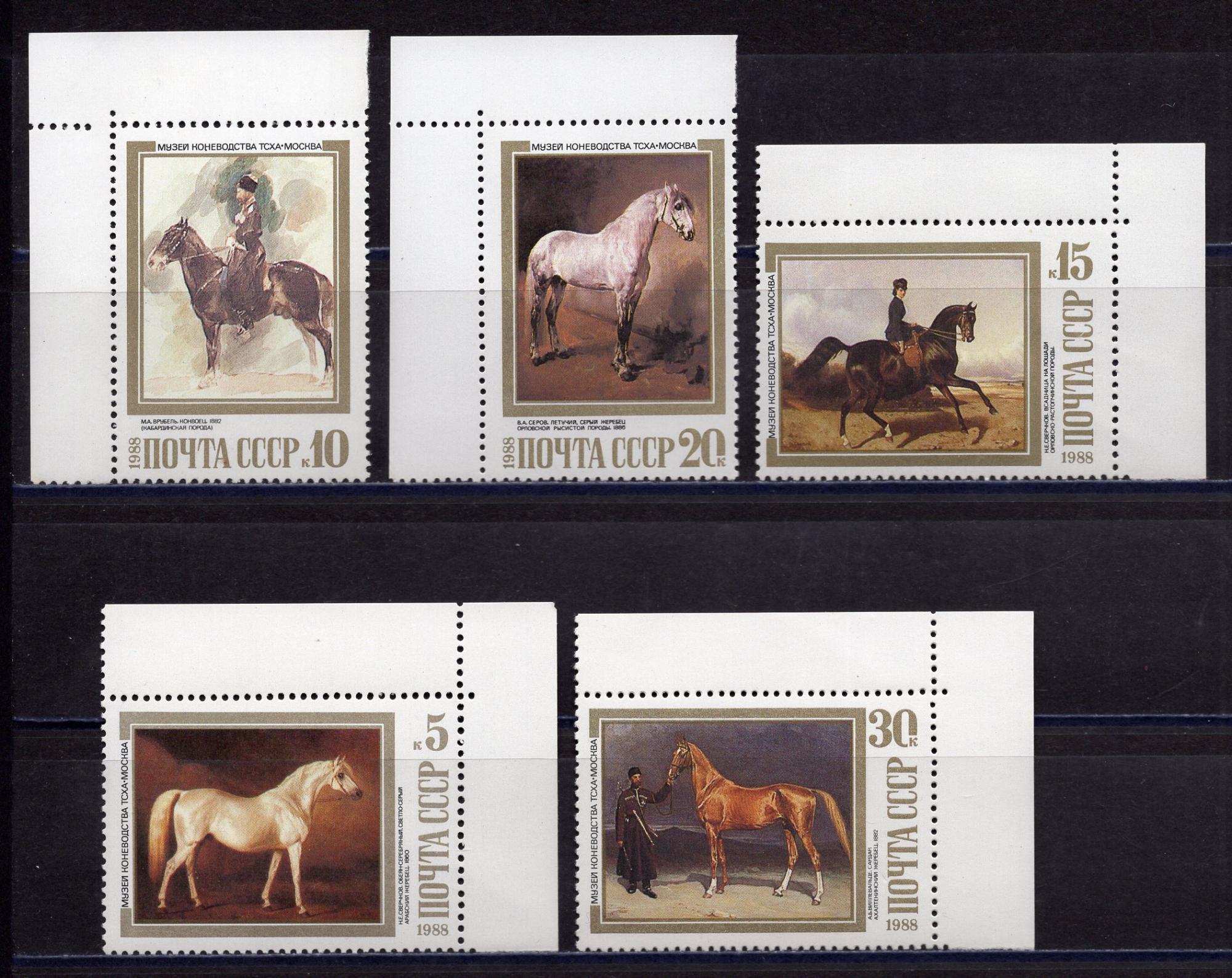 Почтовые марки. СССР. 1988г. Лошади в живописи. №5972-5976.