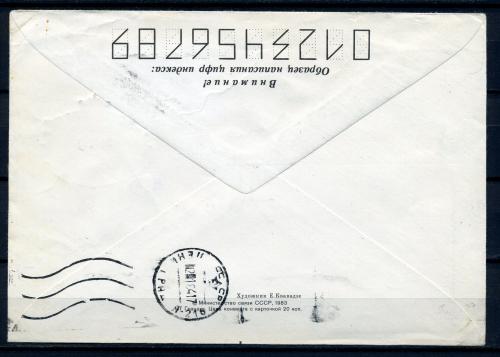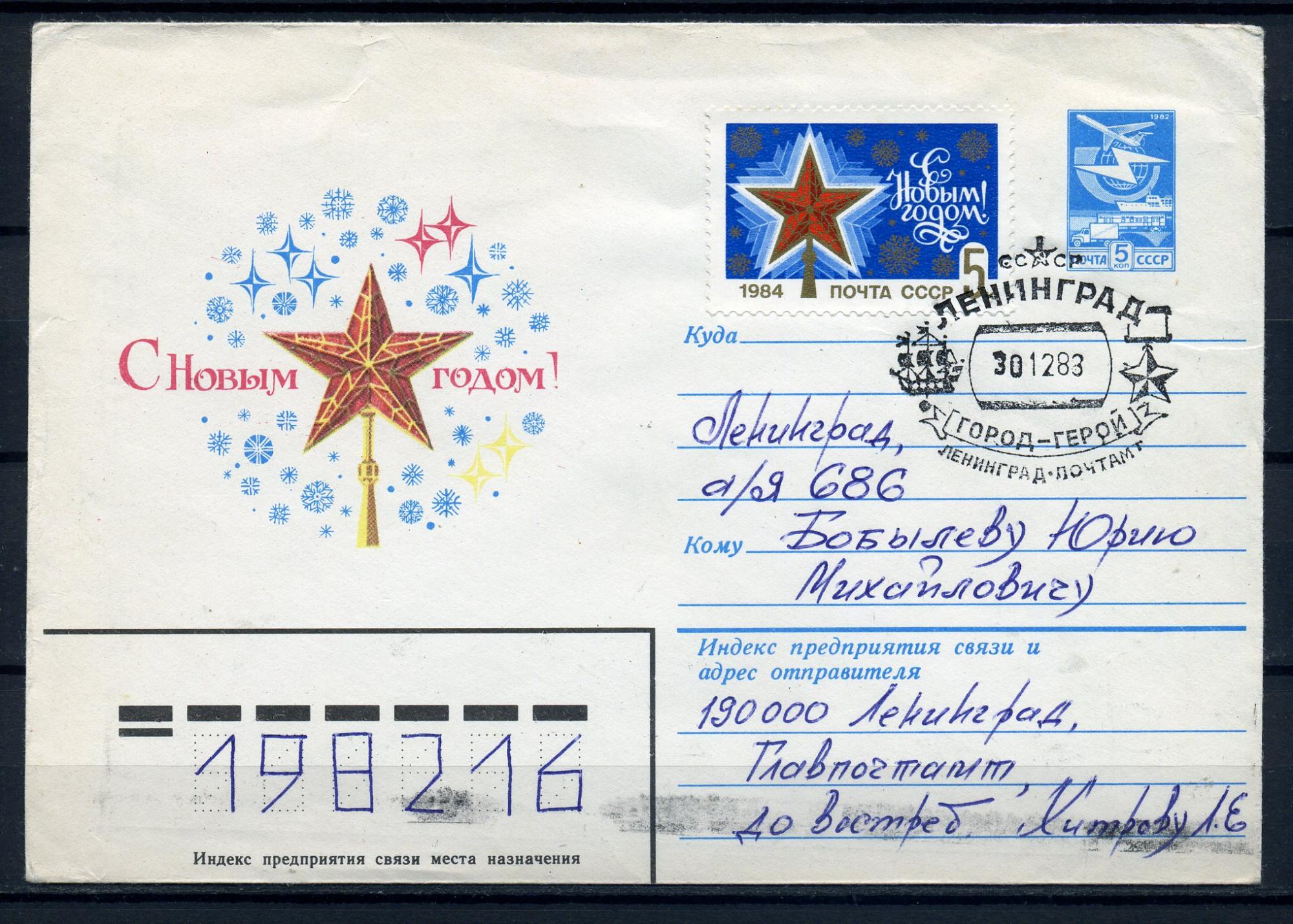 ХМК с маркой и СГ, прошедший почту. СССР 1983 г. С Новым годом!