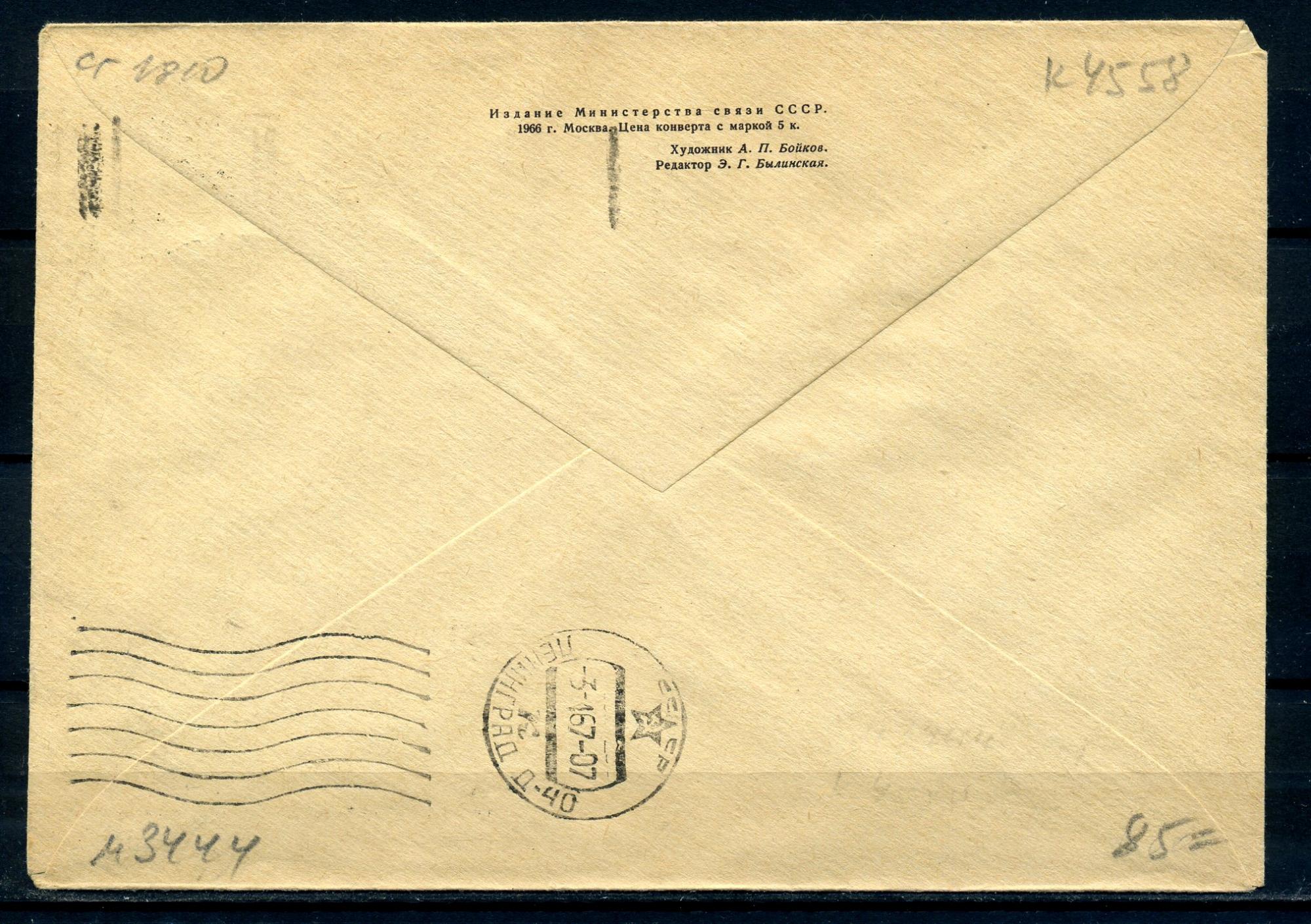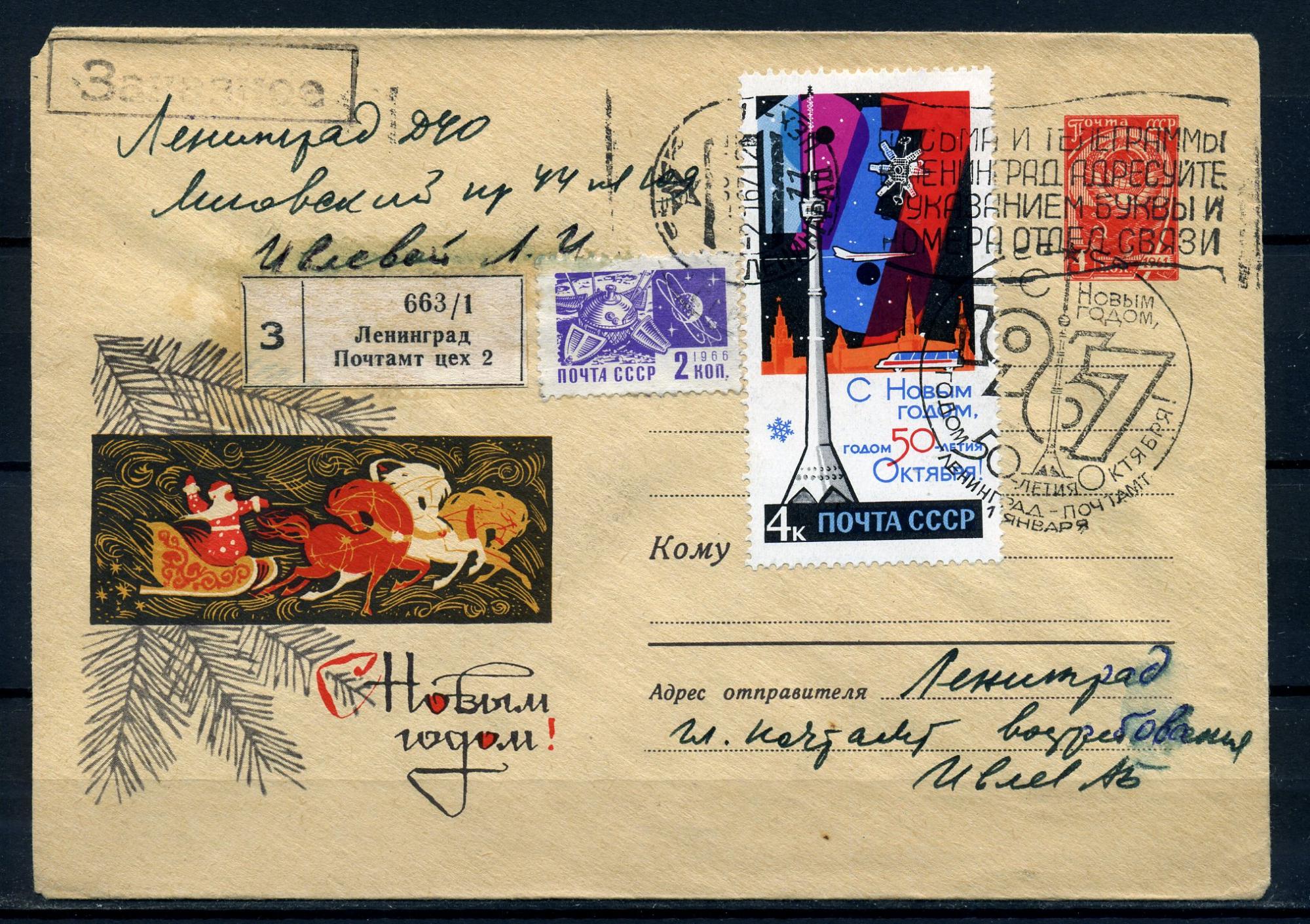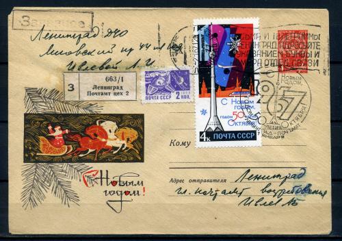 ХМК с маркой и СГ, прошедший почту. СССР 1967 г. С Новым годом!