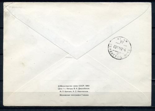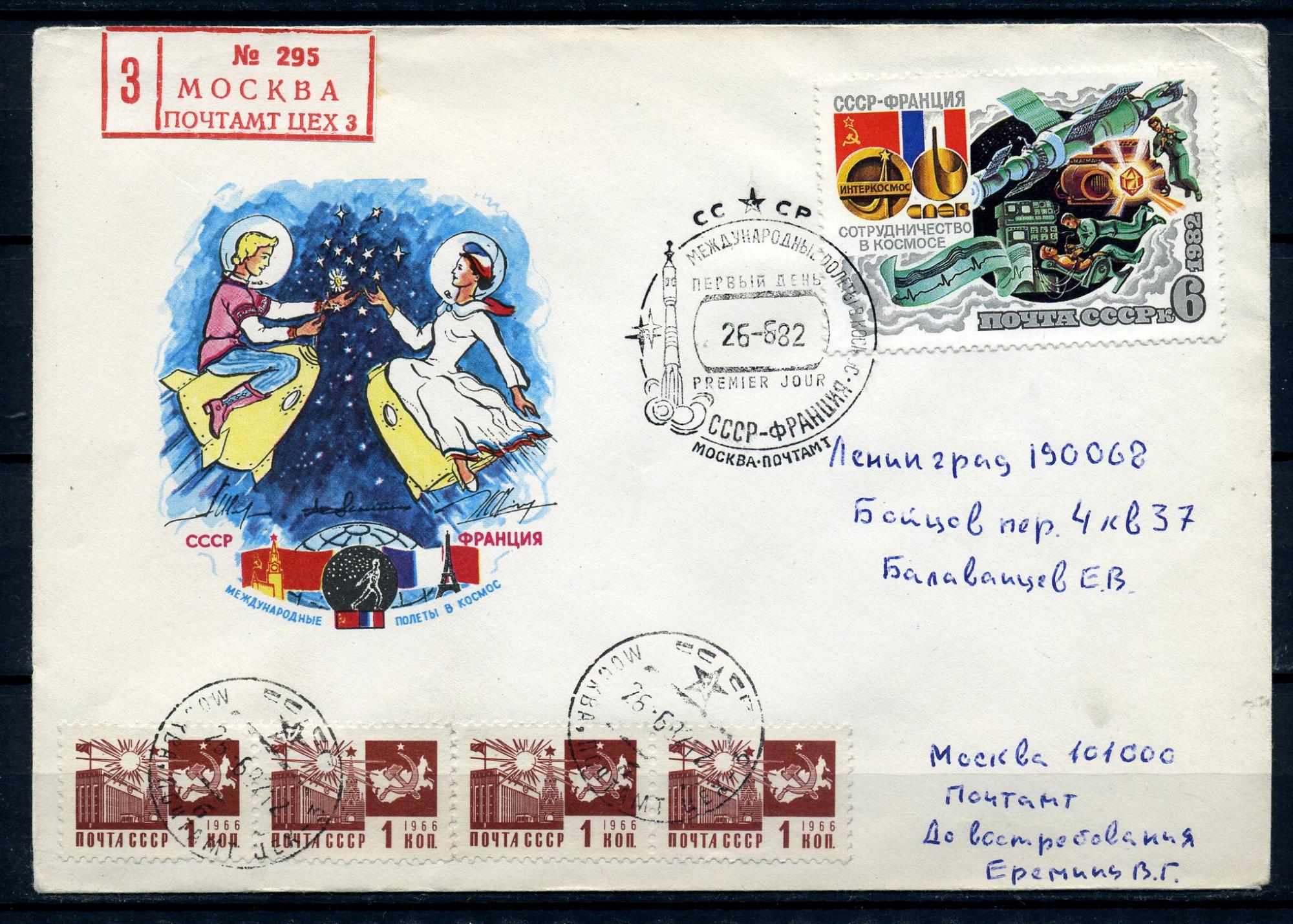 Конверт с маркой и СГ, прошедший почту. СССР 1982 г. Международные полеты в космос. СССР- Франция.