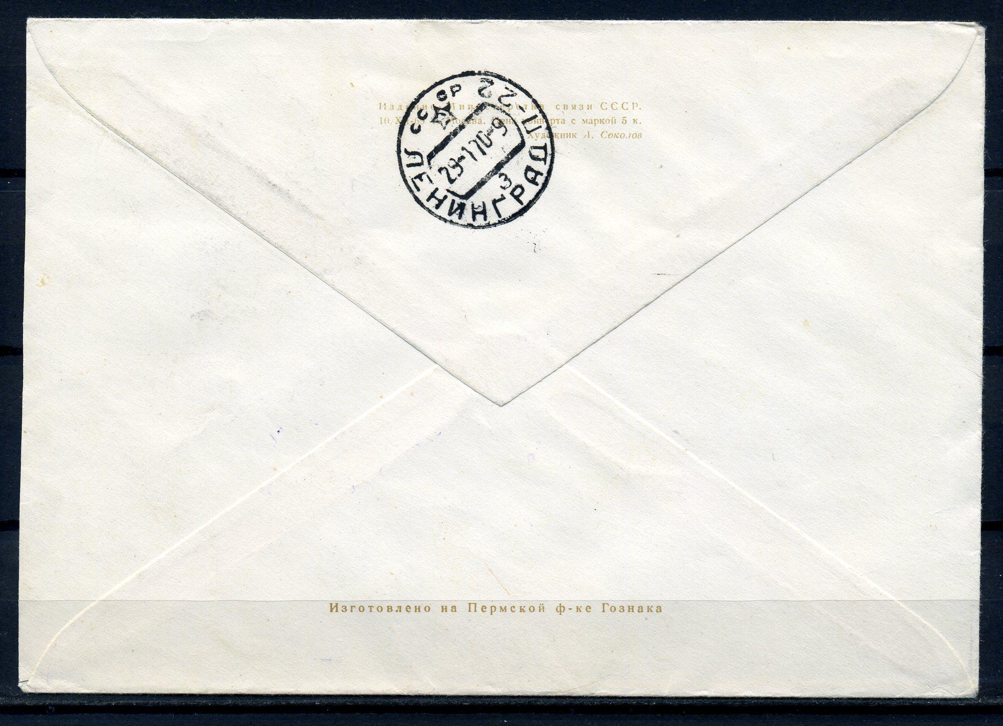 ХМК с маркой и СГ, прошедший почту. СССР 1970 г. 150-летие открытия Антарктиды.