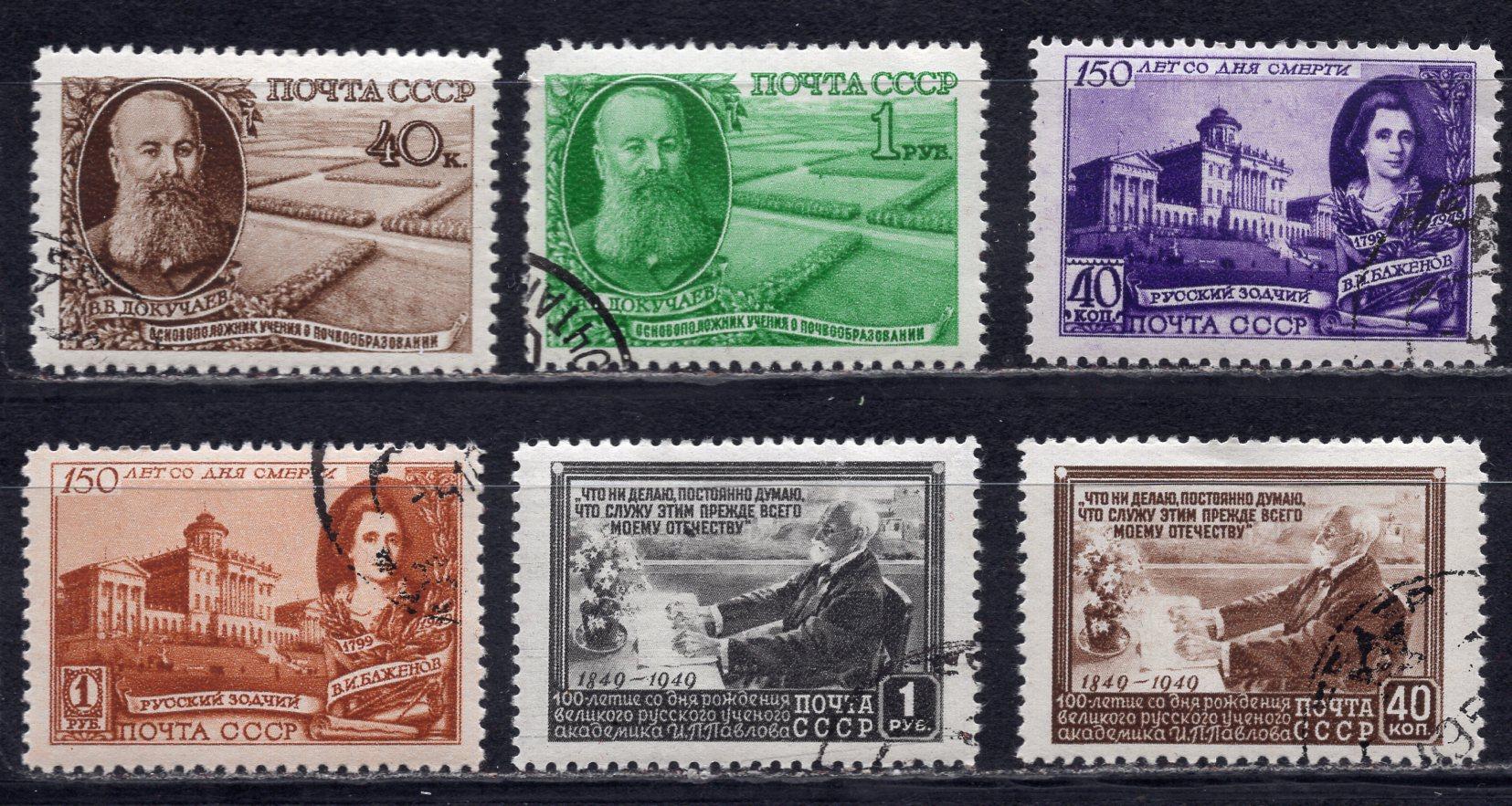 Почтовые марки. СССР, 1949 г. №1418-1421 etc. Докучаев. Баженов. Павлов.