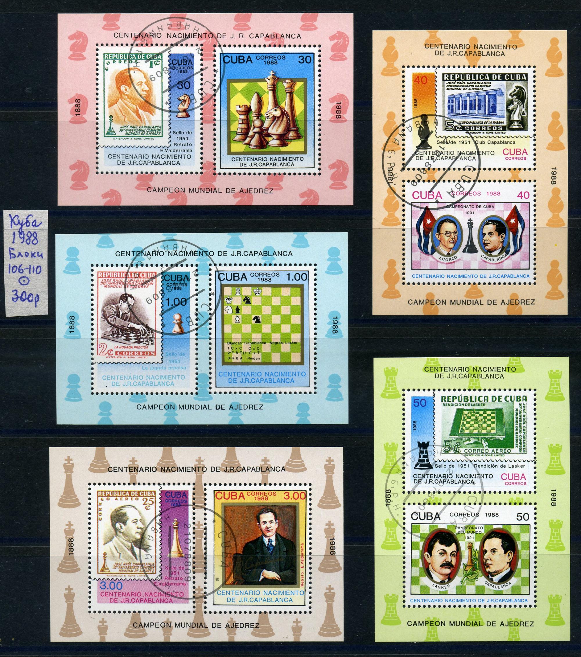 Почтовые марки. Куба 1988 г. Бл. 106-110.