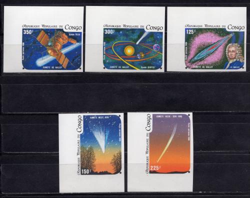 Почтовые марки. Конго. 1986г. Космос. Комета. №1024в-1028в. Беззубц.
