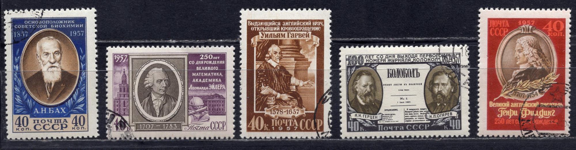 Почтовые марки. СССР, 1957 г. №1999, 2000. etc/ Уильям Гарвей, Герцен и т.д.