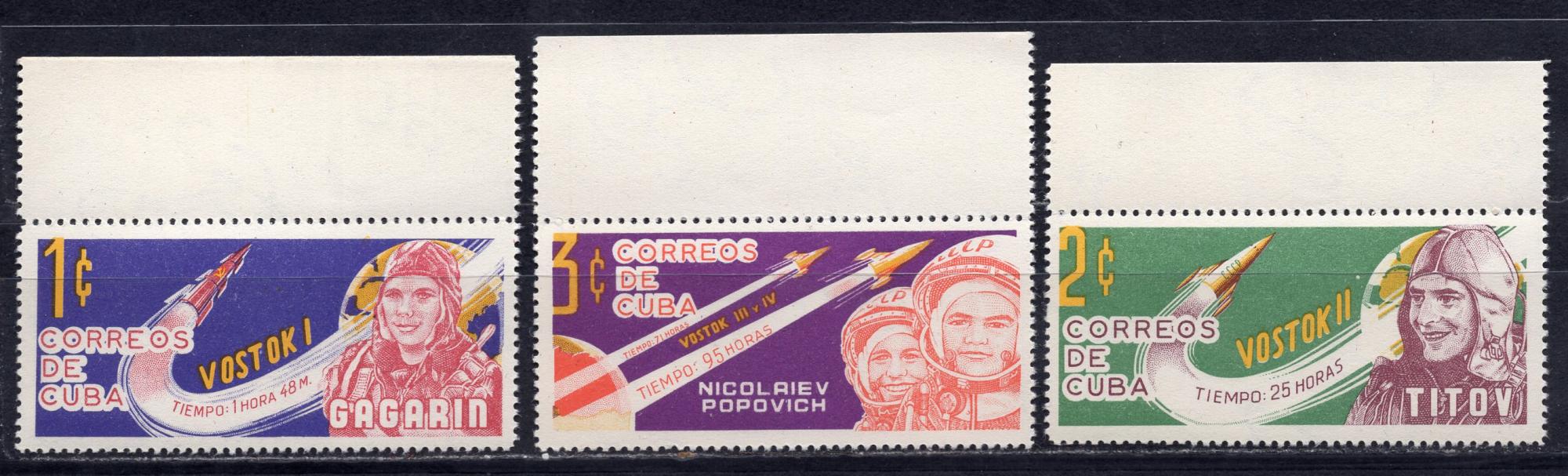 Почтовые марки. Куба, 1963 г. №835-837. Космос. Гагарин.