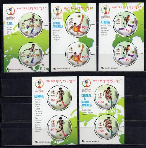 Почтовые марки. Южная Корея, 2002 г. Бл. 708-712. Футбол.