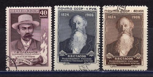 Почтовые марки. СССР. 1957г. Плеханов. Стасов. №1998, №2057-2058.