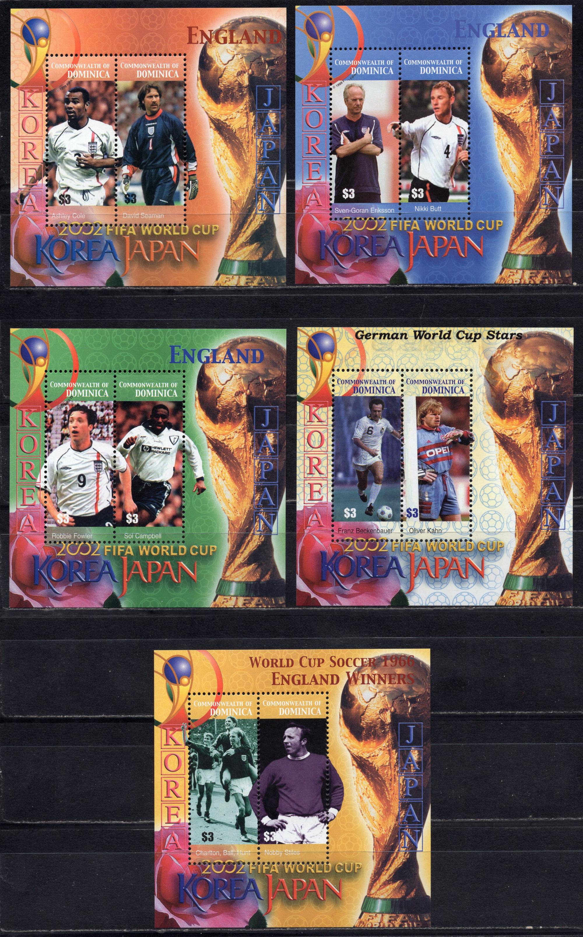 Почтовые марки. Доминика, 2003 г. Бл. 475-479. Футбол. (Mi 27.0 e)