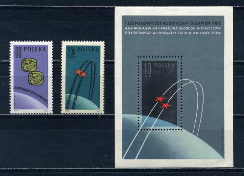 Почтовые марки. Польша. 1962г. Космос. Восток 3-4. №1350-1351. Блок №28.
