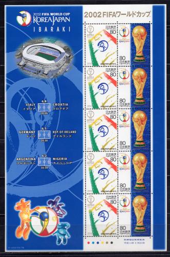 Почтовые марки. Япония, 2002 г. №3348-3349 МЛ. Футбол. Чемпионат мира по футболу, Япония и Южная Корея (2002). Ибараки. (Mi 18.0 e)