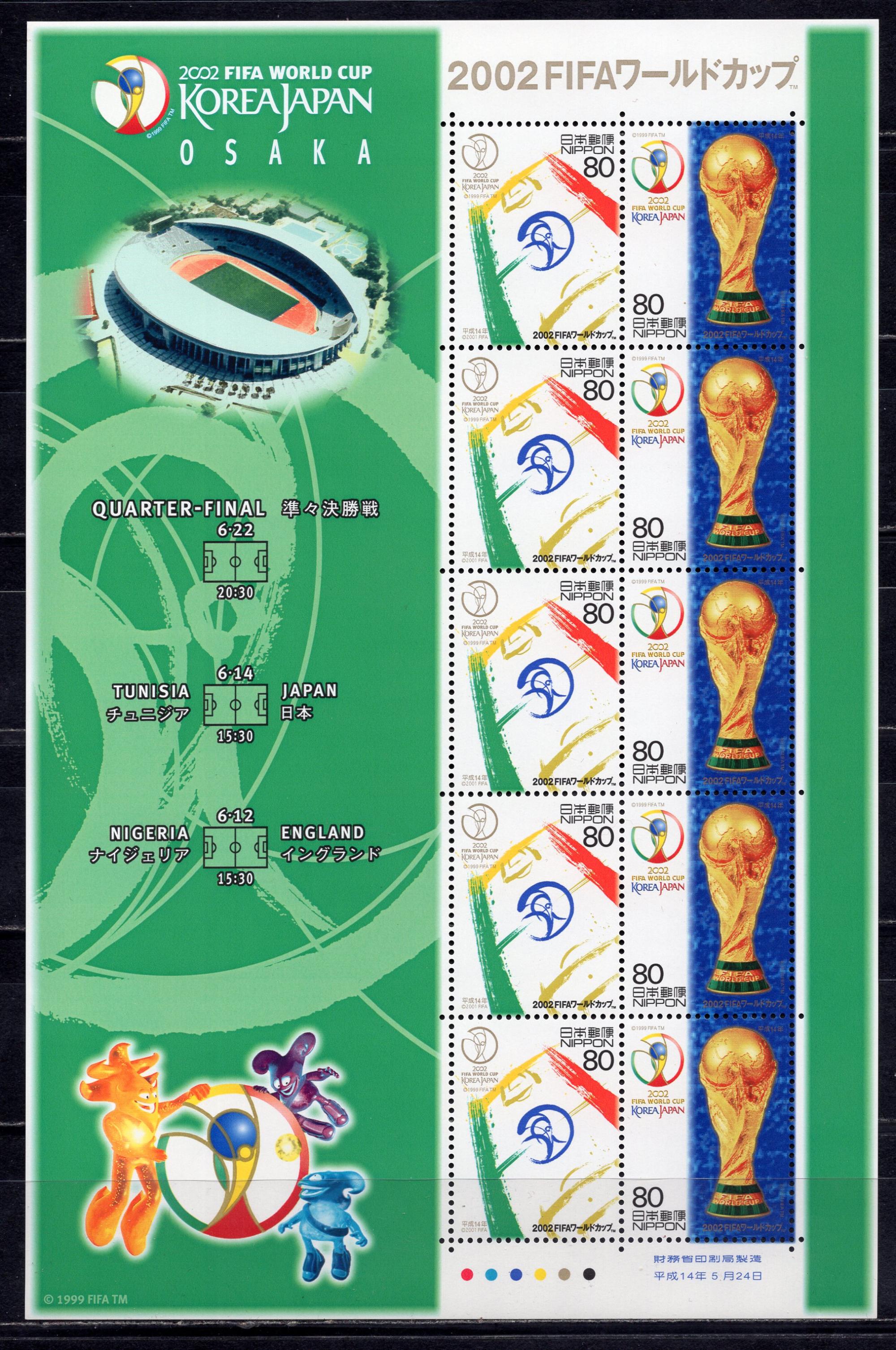 Почтовые марки. Япония, 2002 г. №3348-3349 МЛ. Футбол. Чемпионат мира по футболу, Япония и Южная Корея (2002). Осака (Mi 18.0 e)