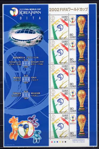 Почтовые марки. Япония, 2002 г. №3348-3349 МЛ. Футбол. Чемпионат мира по футболу, Япония и Южная Корея (2002). Оита (Mi 18.0 e)