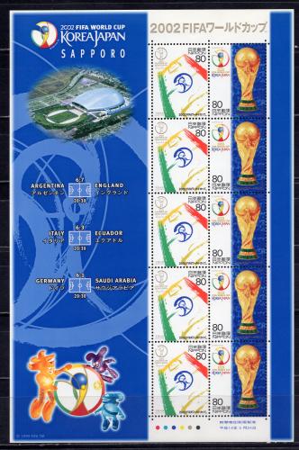 Почтовые марки. Япония, 2002 г. №3348-3349 МЛ. Футбол. Чемпионат мира по футболу, Япония и Южная Корея (2002). Саппоро (Mi 18.0 e)