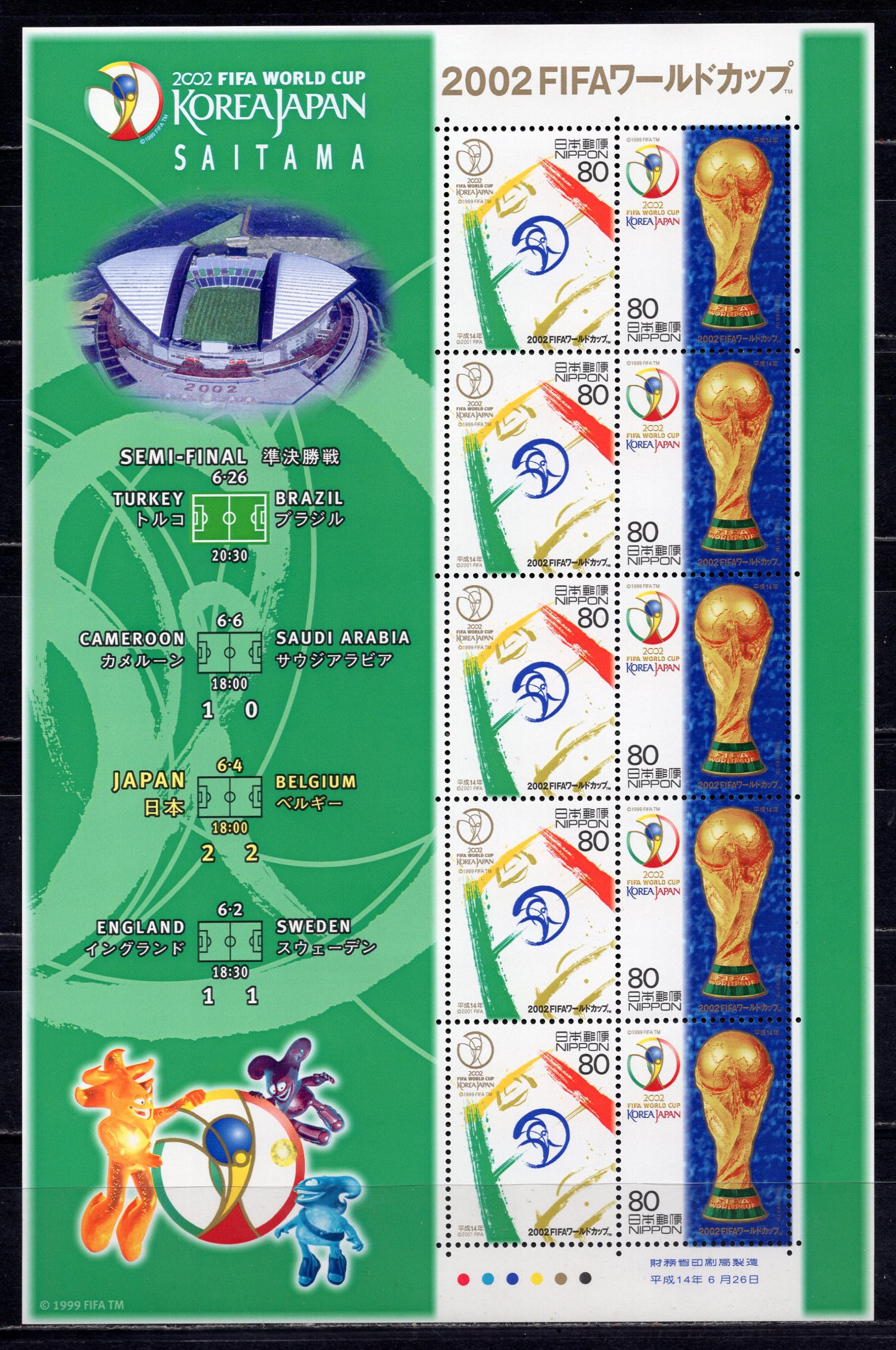 Почтовые марки. Япония, 2002 г. №3348-3349 МЛ. Футбол. Чемпионат мира по футболу, Япония и Южная Корея (2002). Саитама (Mi 18.0 e)