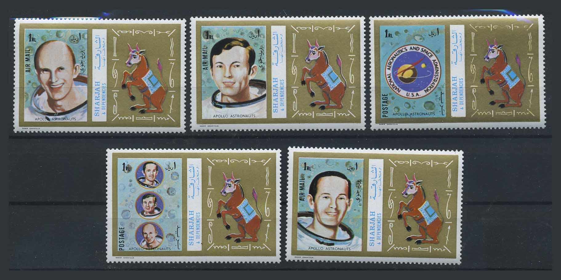 Почтовые марки. Шарджа. 1972 г. № 976-980. Космос. Аполлон-17.