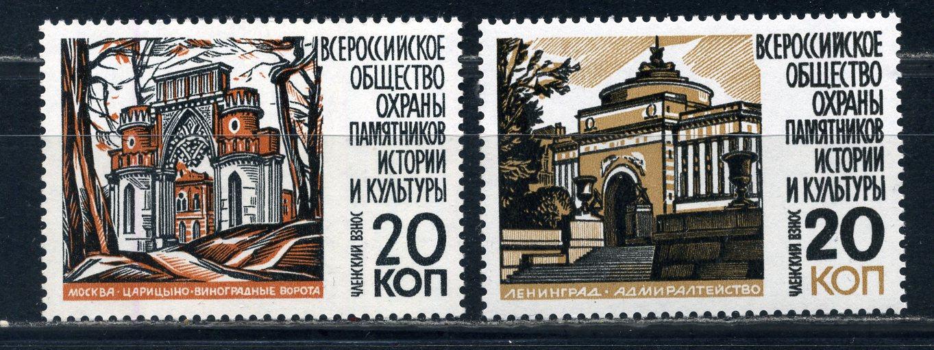 Непочтовые марки. СССР. 1970-е г. Общество охраны памятников. Царицыно. Адмиралтейство.