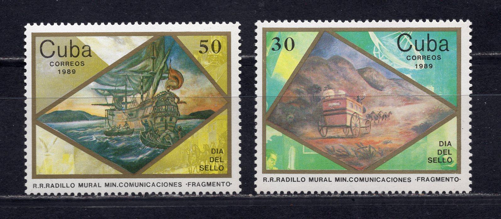 Почтовые марки. Куба, 1989 г. №3285-86. День марки. Транспорт.