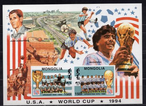 Почтовые марки. Монголия, 1994 г. Бл. 233В. Футбол. Безз.
