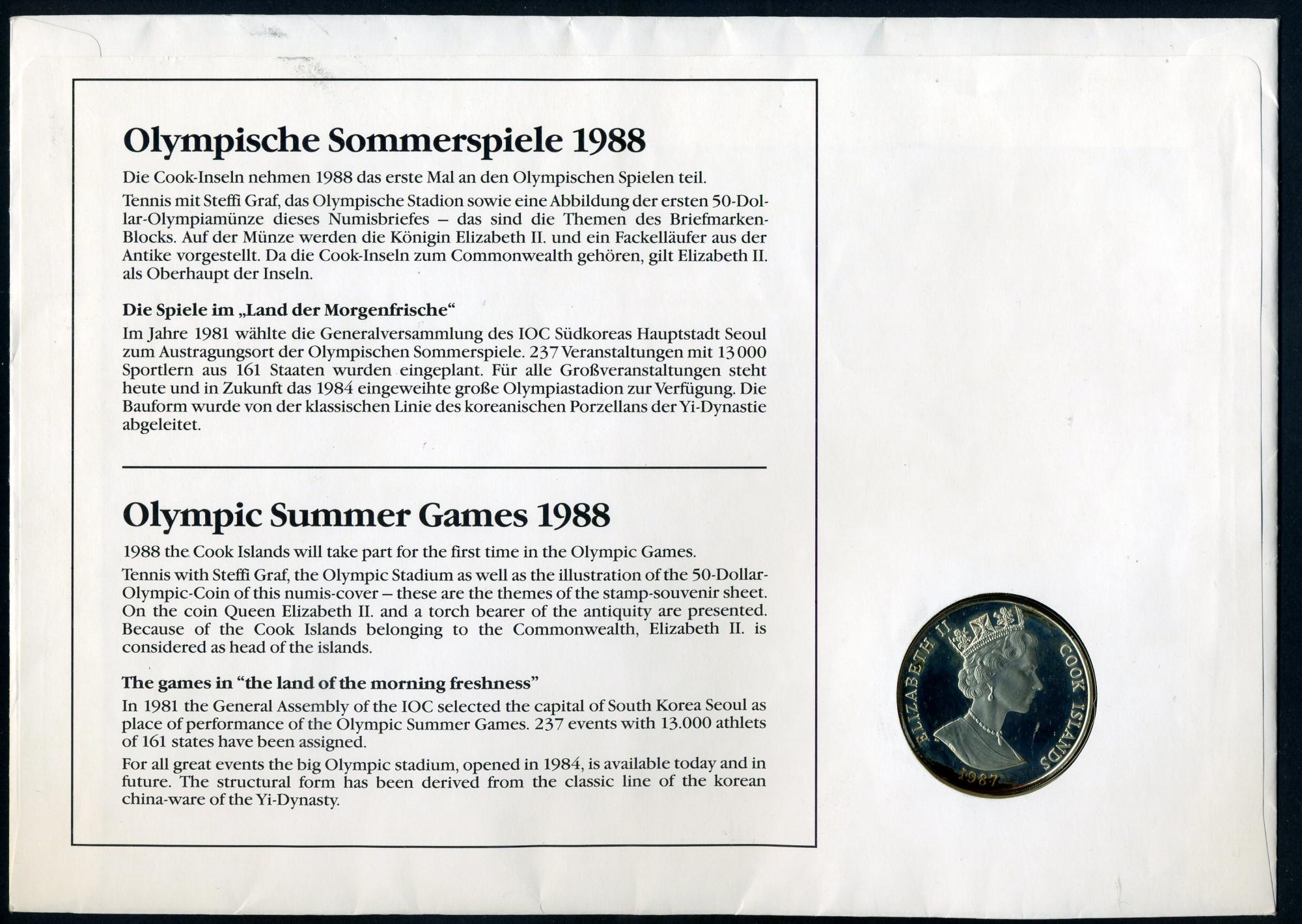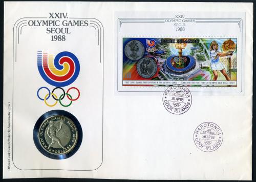 КПД с монетой (50 долларов 1987г.) и СГ. Острова Кука 1988 г. Олимпийские игры 1988 г.
