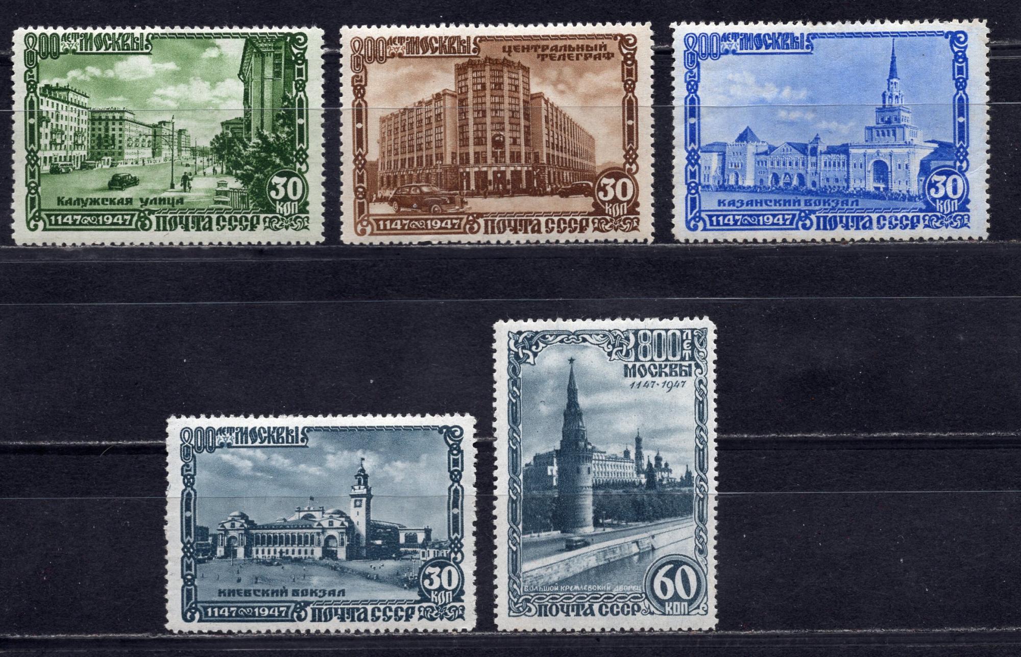 Почтовые марки. СССР, 1947 г. №1165-1168, 1171. Москва.