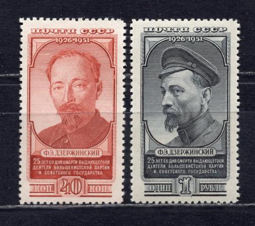 Почтовые марки. СССР, 1951 г. №1622 (Б/к), 1623. Дзержинский. (Одна марка - Б/к, вторая - чист.) (1400 руб.)